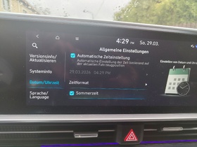 • Auch wenn es für die heutige Uhrenumstellung vermutlich schon zu spät ist, vielleicht als good to know fürs zurückstellen im Oktober: Hyundai weiß nicht, dass man in Europa seit 45 Jahren Sommer- und Winterzeit hat, man muss die Uhr im Fahrzeug tatsächlich manuell umstellen. Was ja an sich kein Problem ist, nur: die Aufladung und Heizung des Fahrzeugs orientiert sich ebenfalls an der Uhrzeit die im Fahrzeug einsgestellt ist, nicht an der tatsächlichen Uhrzeit. Das bedeutet, wenn man am Sonntag der Uhrenumstellung ein geladenes und vorgeheiztes Auto haben möchte, muss man die Abfahrtzeit im Frühjahr eine Stunde früher einrichten, im Herbst dann eine Stunde später. Was ich nicht gemacht hatte, und deshalb der Ladevorgang zu spät und das vorheizen gar nicht gestartet ist, und ich wie im Mittelalter manuell die Scheiben frei kratzen und im Auto frieren musste 😄 Übrigens auch bei dynamischen Stromtarifen zu beachten, weil das Zeitfenster der Ladung dann nicht mehr zu dem des günstigsten Ladepreises passt, auch hier muss man dann bei der Ladeplanung manuell die Ladezeit vor bzw zurückstellen - oder gleich am Vorabend schon die Uhr umstellen, was ich mir jetzt ab dem nächsten Mal als automatische Erinnerung eingerichtet habe.