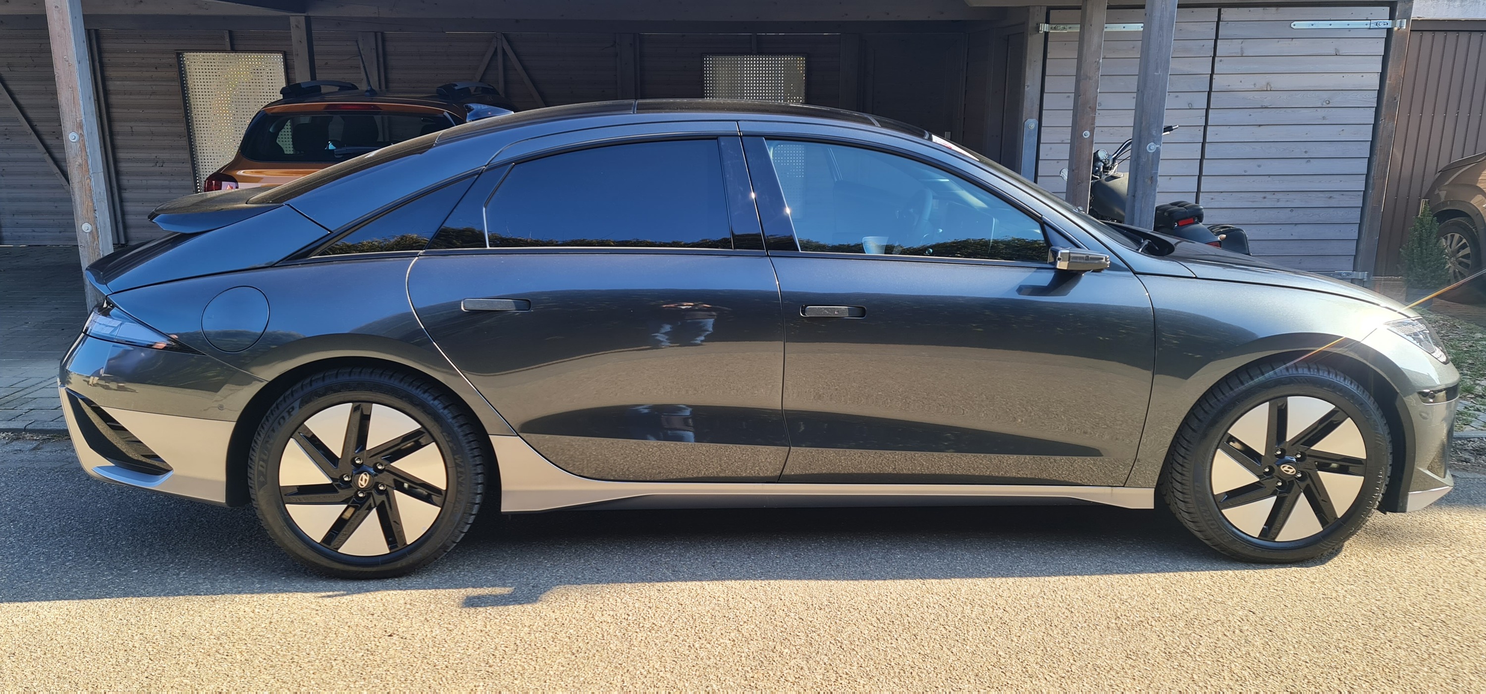 Der Vorführer von meinem Händler auf der Probefahrt. Die Seitenlinie sieht schon klasse aus! Die Farbe habe ich auch bestellt nur mit den großen Felgen. Hoffe war kein Fehler.